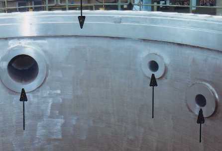 Current applications. Shape welding has been used for many years to add weld metal on forgings, as shown for instance in Fig. 15, where arrows indicate the location of material completions of this kind at the priviously mentioned "Atucha 2" shell flange. The major benefits of this technology are: - simplified and less expensive forging, - short production time, - low additional expenditures, - except for stress-relieving there is no need for other heat-treatments (such as quenching and tempering). |