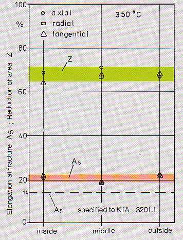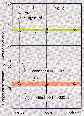 Further requirements such at the fracture appearance transition temperature TNDT ≤ -5 °C are fulfilled with a wide safety tolerance.